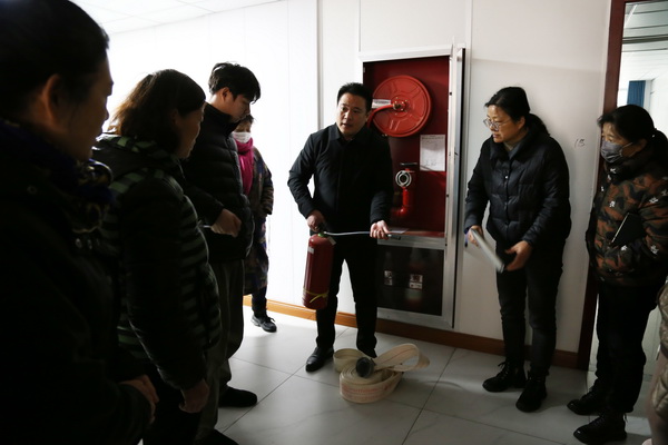 会后,负责学校安全工作的副校长朱森组织全体生活老师进行消防安全培训,通过现场互动的方式,讲解了消火栓的使用方法、注意事项及如何检查灭火器、消火栓是否完整好用等基础常识,并就如何扑灭初起火源进行演示。