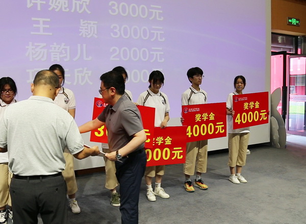 活动中,刘振为家长们分析了初三的整体情况,介绍了我校高中学子学习现状和进步情况,帮助家长们更好地了解孩子们的学习状况,选择更合适的高中。随后刘振宣读了高一年级学子获得奖学金名单,马龙飞亲自颁发奖学金,并借此机会对学生进行激励。勉励同学们鼓足士气,勇往直前。最后,刘振针对中考期间各项工作作出具体安排。