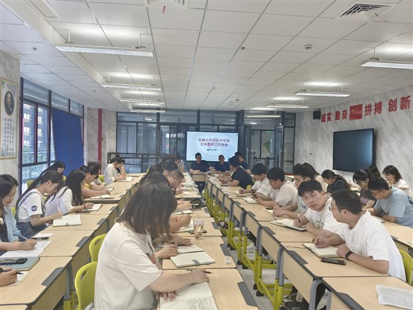学部强调围绕安全,稳定,直升,招生,教学质量为核心,做好毕业班的成绩发布和志愿填报,九年级直升,非毕业班的暑期作业规划和在线辅导,部署对外宣讲工作,紫藤书屋捐书细化工作,教师暑期专业研修工作,质量分析和材料整理总结工作,教师签订劳务合同等工作。